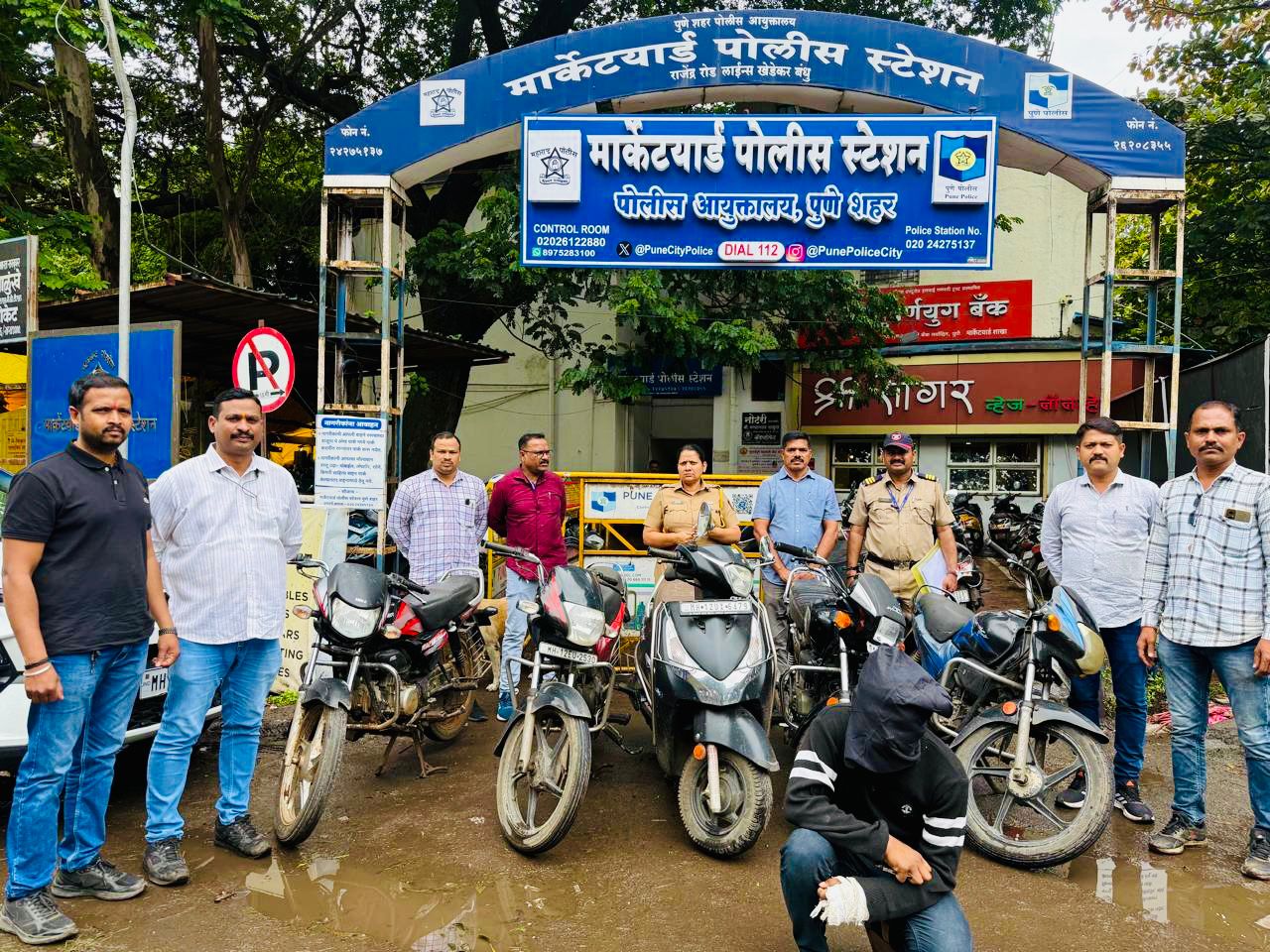 मार्केटयार्ड पोलिस ठाण्याचे तपास पथक अधिकारी उपनिरीक्षक सुनिल भापकर यांना माहिती दिली. संशयित दुचाकी चालकाला अडवून पथकाने त्याची चौकशी करत असताना त्याने पळून जाण्याचा प्रयत्न केला. त्यावेळी त्याला पकडून त्याची चौकशी करण्यात आली. त्याने मार्केटयार्ड येथील पार्कींग मधून दुचाकी चोरी केल्याचे सांगितले. मार्केटयार्ड पोलिस ठाण्यात गुन्हाही दाखल झाला होता. त्याच्याकडे अधिक तपास केल्यानंतर त्याने पोलिस ठाण्याच्या हद्दीतून आणखी ३ गाड्या चोरी केल्याचे सांगितले. ही कारवाई पोलिस उपायुक्त डॉ. राजकुमार शिंदे यांया मार्गदर्शनाखाली वरिष्ठ पोलिस निरीक्षक मनिषा पाटील, पोलिस अमंलदार दत्ता राऊत, राजेश थोरात, कौस्तुभ जाधव, महेश जेधे, किरण जाधव, नितीन झेंड, आशिष यादव यांच्या पथकाने केली.